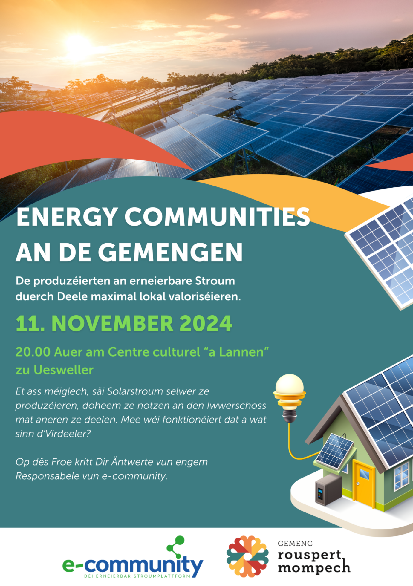De produzéierten an erneierbare Stroum duerch Deele maximal lokal valoriséieren.