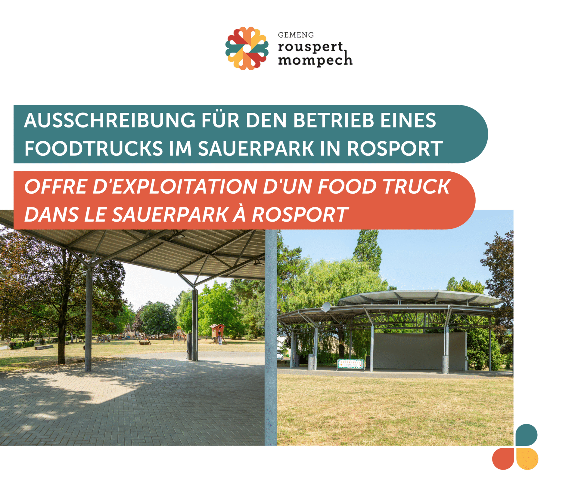 Die Gemeinde Rosport-Mompach schreibt die Verpachtung eines Stellplatzes für einen Foodtruck im Sauerpark in Rosport für den Zeitraum vom 1. Juli bis 15. September 2025 aus. Ziel ist es, den Besuchern des Sauerparks eine vielfältige und attraktive gastronomische Versorgung zu bieten.