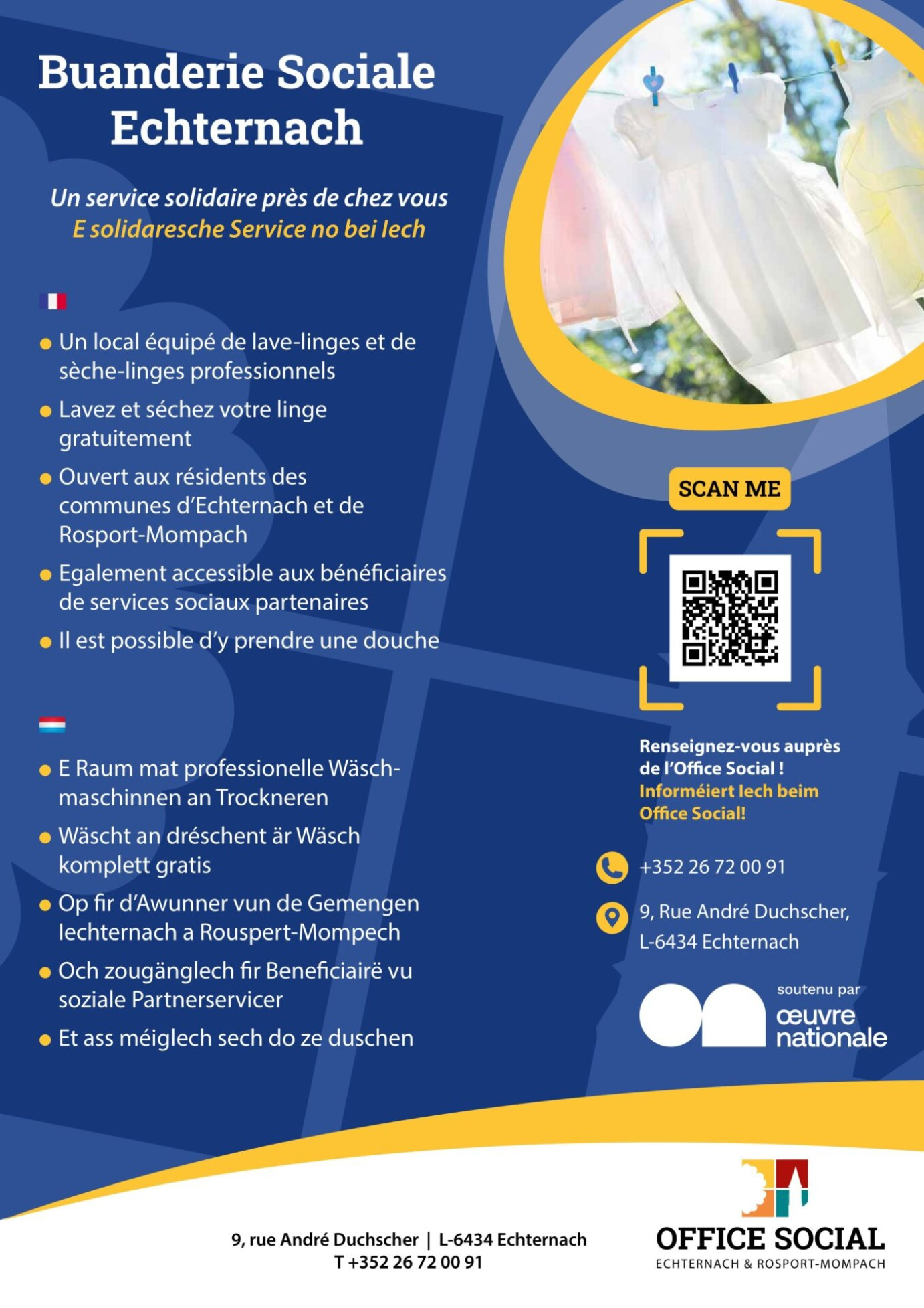 Pour plus d'infos: https://echternach.lu/buanderie-sociale/