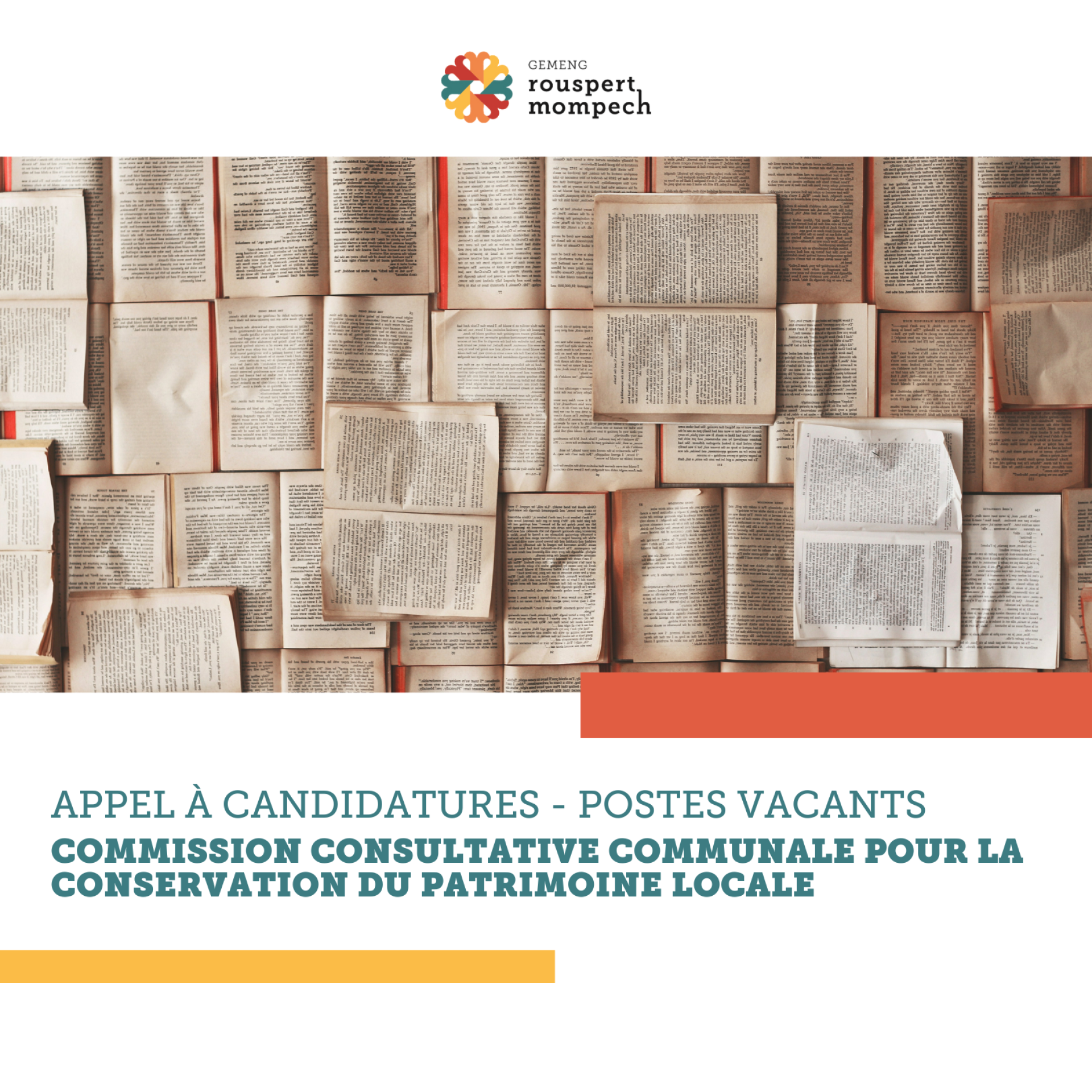 Conformément à l’article 15 de la loi communale modifiée du 13 décembre 1988, il est porté à la connaissance du public que, par décision du conseil communal lors de sa séance du 13 octobre 2025, une nouvelle commission consultative communale a été créée : la « Commission consultative communale pour la conservation du patrimoine local ».