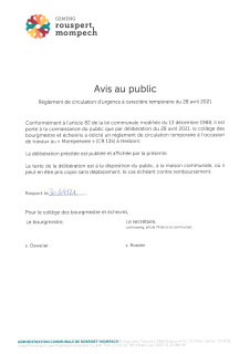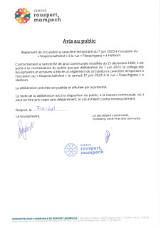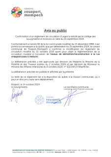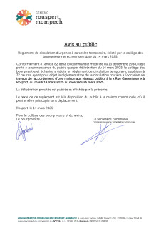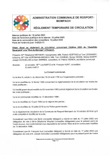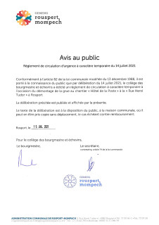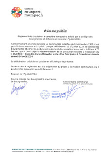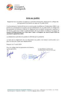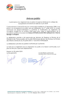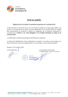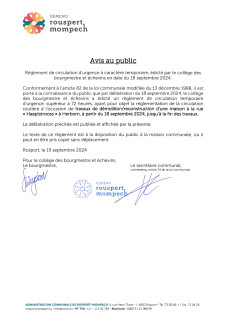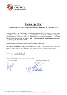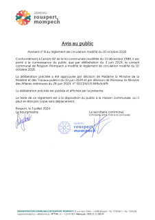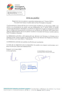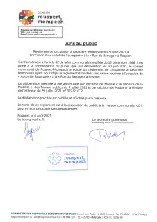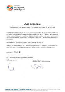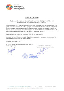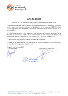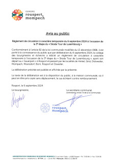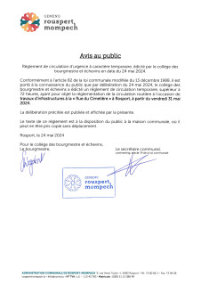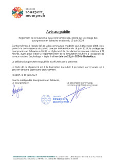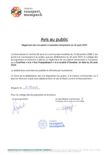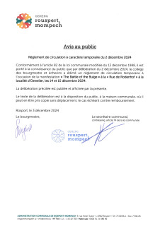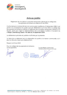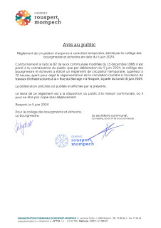 013 2024 Règlement de circulation d'urgence - Rosport - AVIS AU PUBLIC
