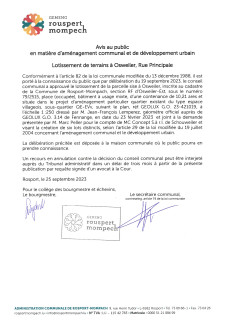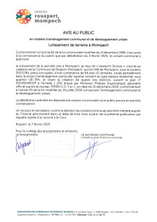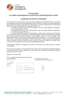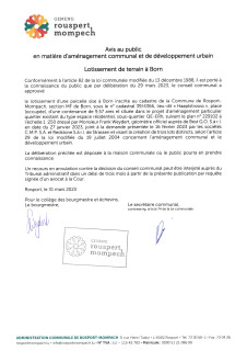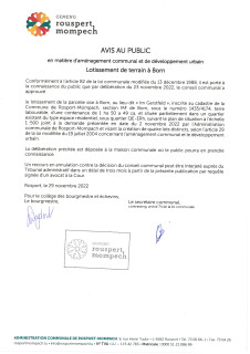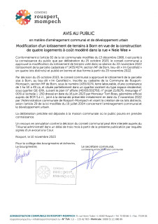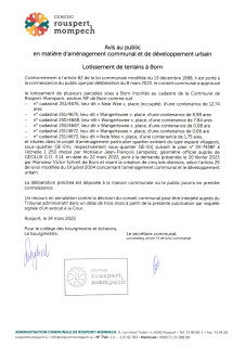 2023-11-10 AVIS AU PUBLIC - Modification d'un lotissement de terrains à Born en vue de la construction de 4 logements à coût modéré dans la Rue Neie Wee
