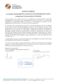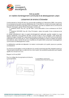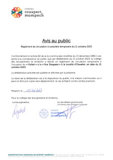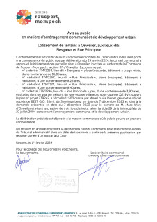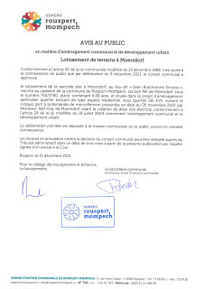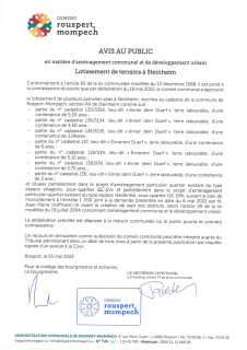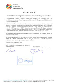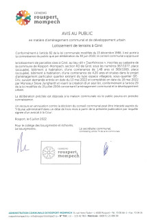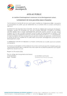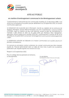 Avis au public - en matière d’aménagement communal et de développement urbain (19/10/2022)