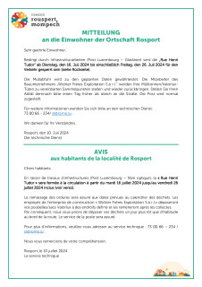 2024-07-16 AVIS - Rosport - Rue Henri Tudor - Travaux d'infrastructure Wickler - Post