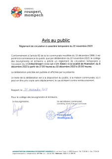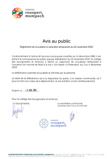 017-2022 Règlement de circulation - Chrëschtmaart Méischdref - AVIS DE PUBLICATION