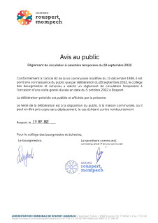 28-09-2022 - Avis au public signé Art.16 - 1-22-0355