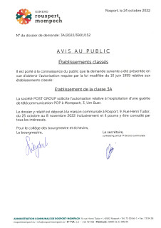 2022-10-24 - Avis au public 3A-2022-3901-152_Post Group_guérite de télécommunication POP